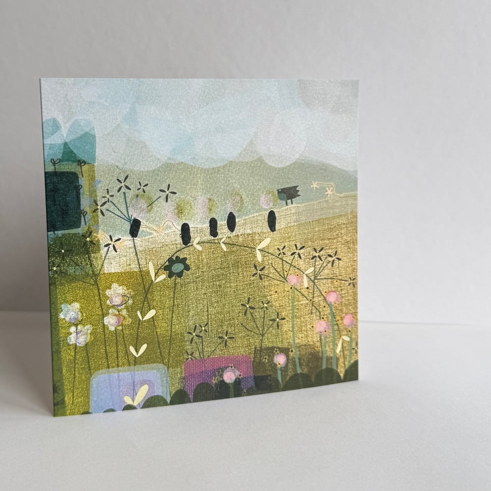 A beautifully printed greetings card with the imagery taken from one of my own hand pulled prints. The image is printed on 280gsm textured card and comes with a recycled brown Kraft envelope. The inside of the card has been left blank ready for your own message. The card comes with free UK postage.